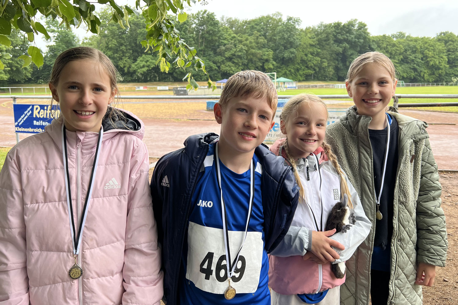 Der komplette Tag des Schülersportfestes in Korschenbroich wurde von strömendem Regen begleitet. Aber: von dem kalten und nassen Wetter ließen sich unsere AthletInnen nicht aufhalten. Zuerst starteten unsere Jüngsten aus den Jahrgängen 2018 und 2019 beim Schnupperwettkampf....