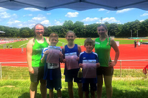 Bei über 30°C und in der prallen Sonne kämpften sich Melissa H. (W11), Paul Z. (M9) und Leonardo C. (M9) durch ihre Disziplinen (Weitsprung, 50m Sprint und Ballwurf). In Melissas Altersklasse traten dabei über 40 Mädchen zum Weitsprung und Sprint an. Trotz der großen Teilnehmergruppe kämpfte sich Melissa tapfer durch und beendete ihren Wettkampf mit guten Ergebnissen.